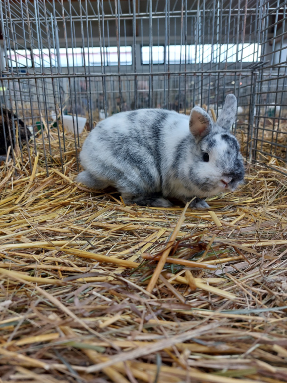 Otmar Groß stellte Tiere seiner Rassen Zwerg-Rexe dalmatinerfarbig schwarz-weiß, FbZw rhönfarbig und FbZw lohfarbig schwarz.